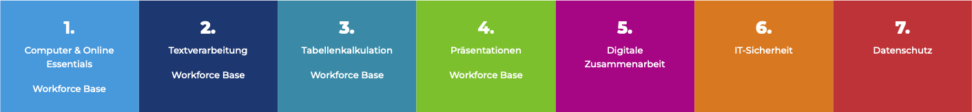 Der ICDL bietet Programme, die den Anforderungen der heutigen digitalen Welt gerecht werden. Unabhängig davon, ob Sie die ICDL Workforce Base oder workforce ICDL Workforce Module durcharbeiten, um den für den Arbeitsplatz erforderlichen Standard für digitale Fähigkeiten zu erreichen, oder ob Sie mit den Modulen fortgeschrittenere Fähigkeiten für die berufliche Effektivität entwickeln möchten, ICDL bietet eine große Auswahl an Modulen, mit denen Sie das ideale digitale Profil für Ihre Bedürfnisse erstellen können. Ab vier frei wählbaren bestandenen Modulen wird der ICDL Profile ausgestellt. Alle weiteren erfolgreich absolvierten Module werden auch auf dem ICDL Profile Zertifikat aufgeführt.