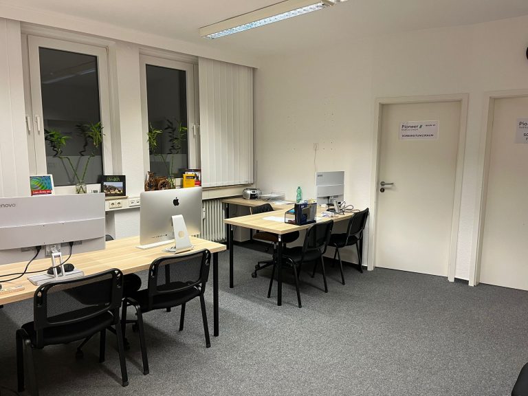 Wir bieten Deutschkurse, Coaching und WeiterbildungBildungsangebote in PIONEER Institut Hannover Sprachkurse ICDL Center Weiterbildung STANDORT HANNOVER PIONEER Institut Hannover Telefon: +49 511 33772750 Adresse: Alter Flughafen 14A, 30179 Hannover E-Mail: info@pioneer-institut.com Öffnungszeiten: Montag bis Freitag von 10:00 Uhr bis 18:00 Uhr Parkplätze: Kostenlose an der Straße